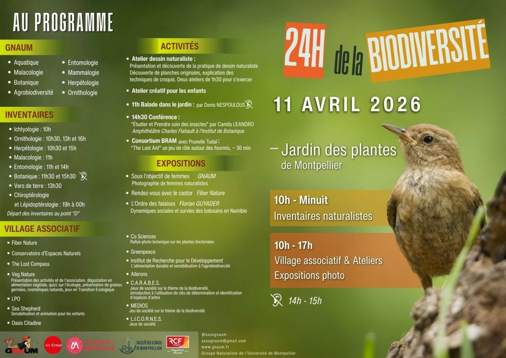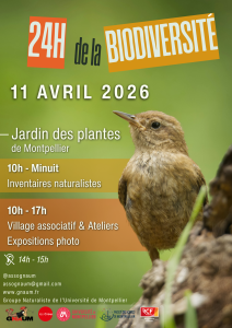 Cette année encore, le GNAUM organise les 24H de la Biodiversité au Jardin des Plantes de Montpellier, qui aura lieu le ✨ samedi 11 avril 2026 ✨.